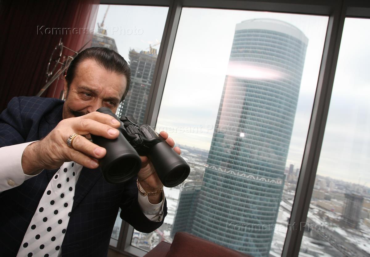 Певец Вилли Токарев с биноклем выбирает апартаменты в "Башне Федерация" в деловом центре…
