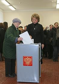 Губернатор Санкт-Петербурга Валентина Матвиенко проголосовала на избирательном участке № 1771, расположенном в общеобразовательной школе № 18 и Выборы Президента России в школе 305 Фрунзенского района петербурга где учился кандидат в Президенты Дмитрий Медведев