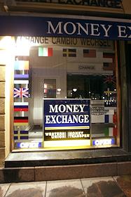 Виды города Хельсинки. Витрина пункта обмена валюты.