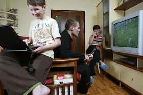 Молодая семья в своей квартире пользуется интернетом, телевизионной антенной и телефоном "в одном проводе".