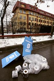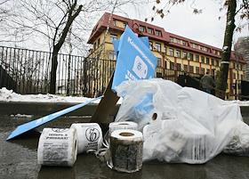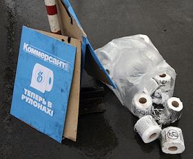 Мусор у ИД "Коммерсантъ". Рулоны туалетной бумаги с напечатанной газетой