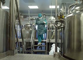 Производство медикаментов на ОАО "Нижфарм". Аппаратчица в цеху с центрифугами для приготовления…