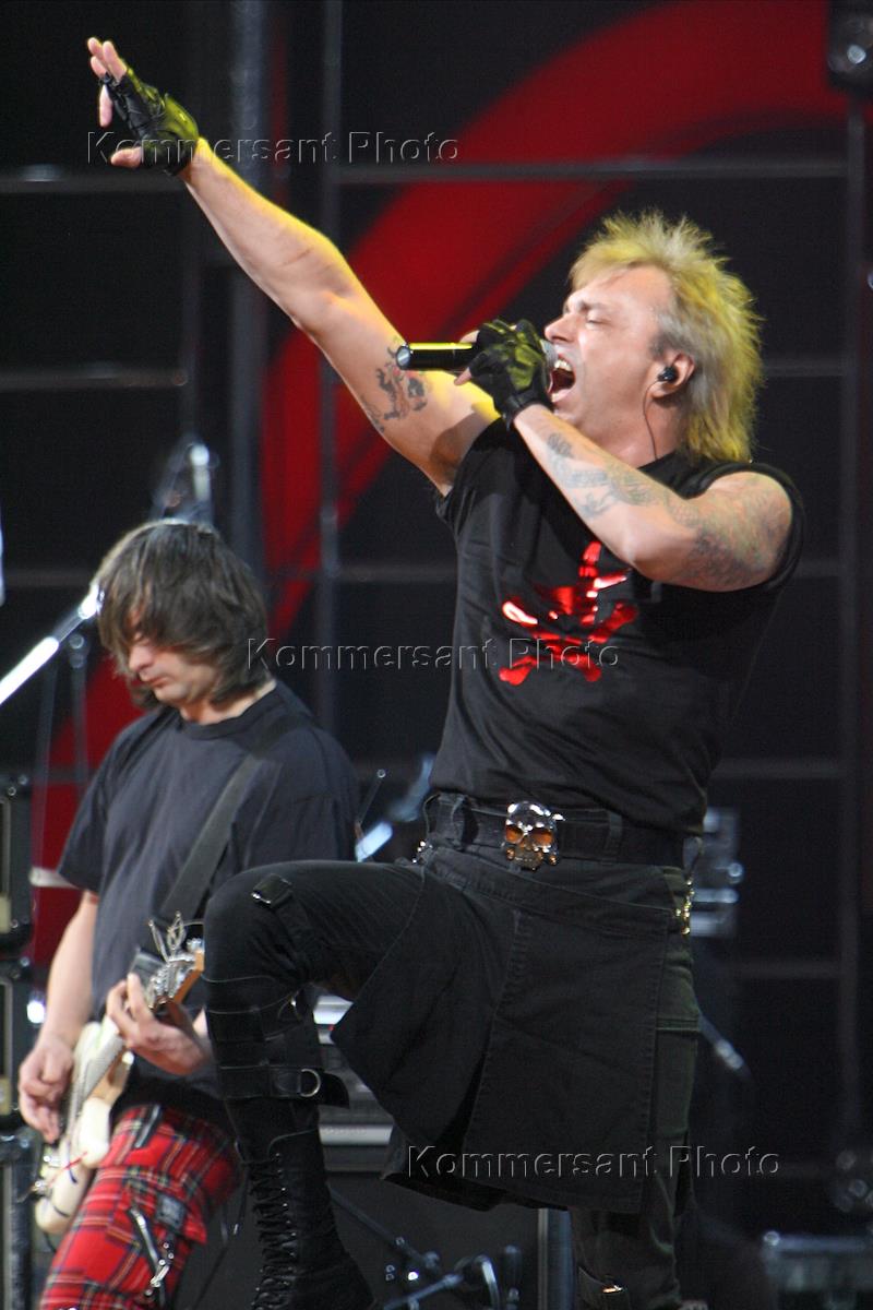 Солист группы "Король и шут" Михаил Горшенев ("Горшок") (слева) во время выступления на церемонии…