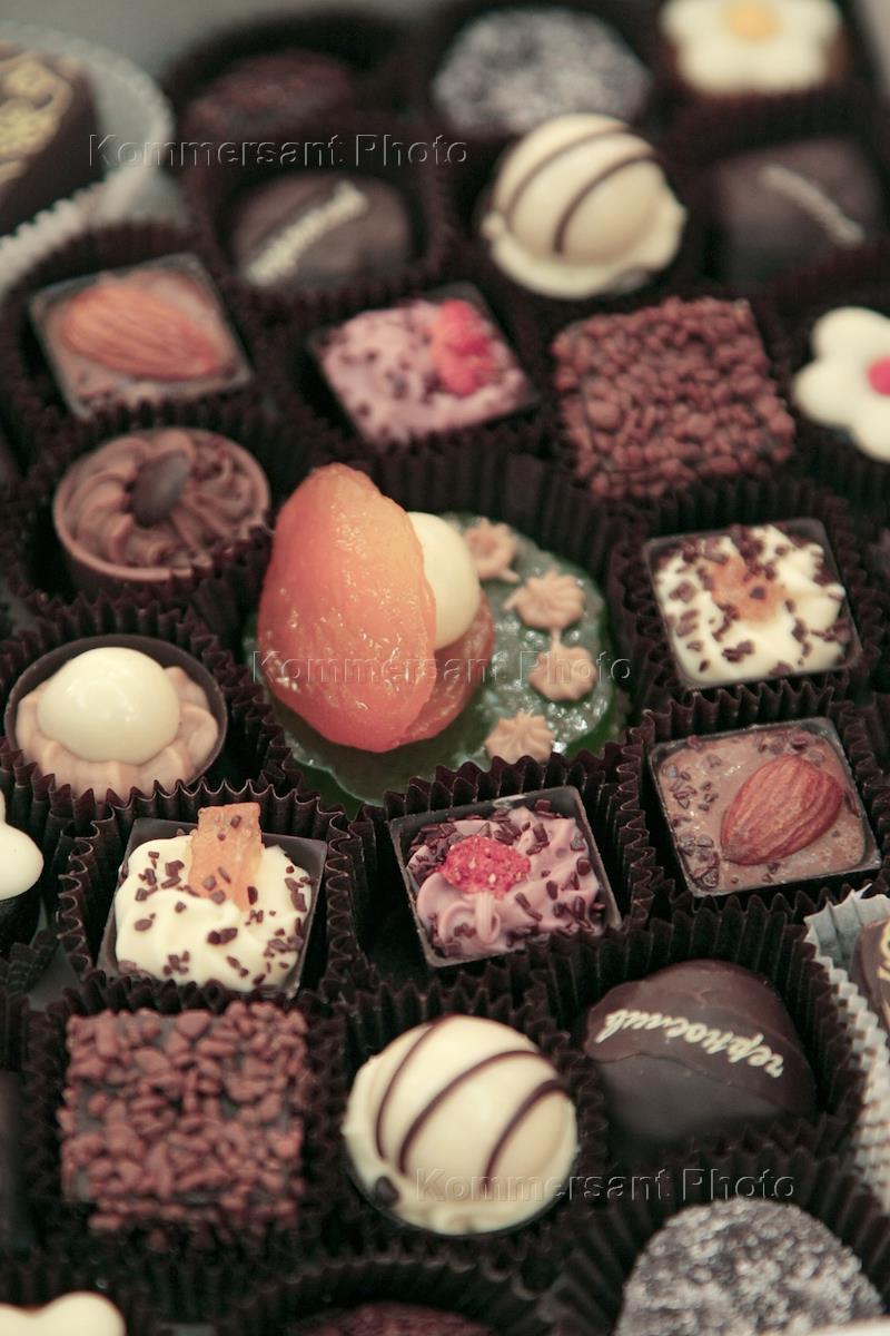 Шоколадные конфеты ручной работы в в шоколадном салоне кофейни "Конфаэль" на Никитском бульваре.