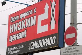 Рекламный плакат магазина бытовой техники "Эльдорадо" на Открытом шоссе, дом 2. Надпись "Одна дорога…