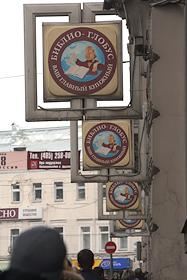 Вывески на фасаде книжного магазина "Библио-Глобус".