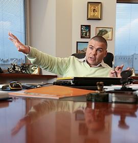 Глава компании "Созвездие приключений" Александр Сорокин во время интервью в своем рабочем кабинете.
