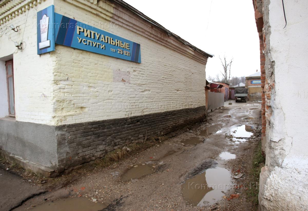 Вывеска на дома "Ритуальные услуги" в городе Таруса.