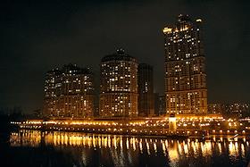 Виды Москвы. Жилой комплекс "Алые паруса" ночью.