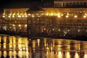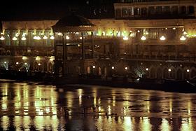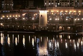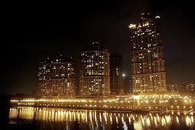 Набережная элитного жилого комплекса "Алые паруса" ночью.