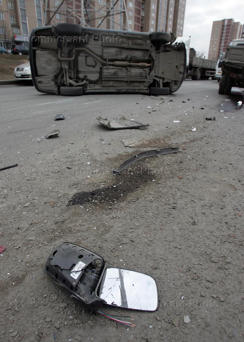 Дорожно-транспортное происшествие на Кантемировской улице. Перевернувшийся в результате аварии…