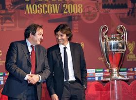 Президент УЕФА Мишель Платини (слева) и представитель итальянского "Милана" футболист Леонардо…