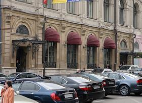 Автомобили на парковке ресторана "The Most" на Кузнецком мосту.