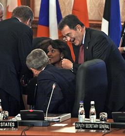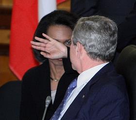 Саммит НАТО. Президент США Джордж Буш (справа), государственный секретарь США Кондолиза Райс (в…