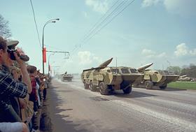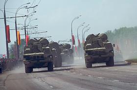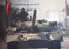 Демонстрация военной техники во время парада в честь Дня Победы на Поклонной горе.