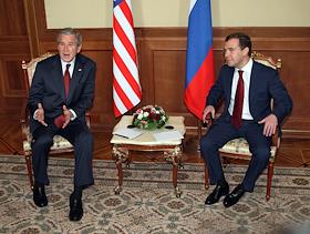 Встреча Президентов России и США Владимира Путина (справа) и Джорджа Буша (слева) в президентской…