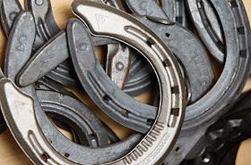 Подковы на витрине магазина "Скачки - спорт".