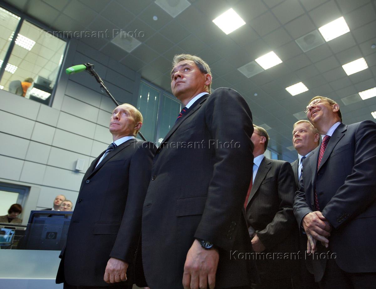Президент России Владимир Путин (в центре), министр России по делам гражданской обороны,…