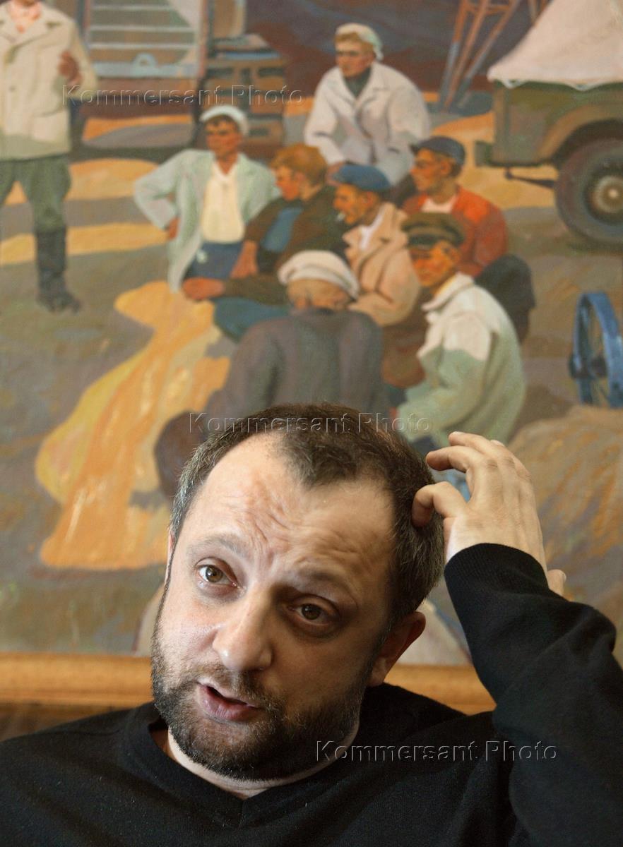 Генеральный директор группы компаний "Триумф" Борис Горелик на фоне картины из своей коллекции.