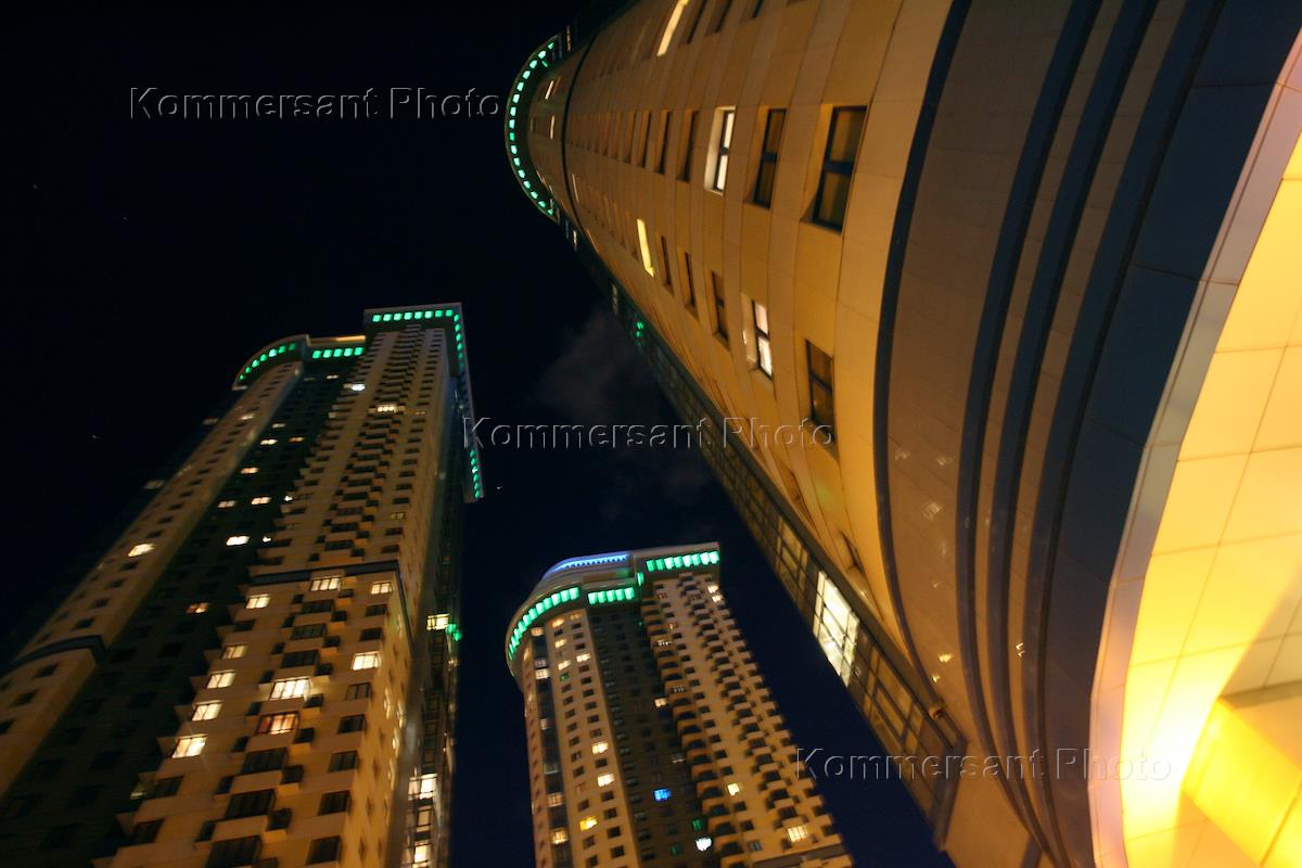 Вечерняя подсветка жилого комплекса "Воробьевы горы".