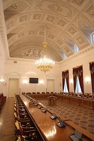 Зал заседаний Конституционного суда России в отреставрированном здании Сената и Синода на площади…