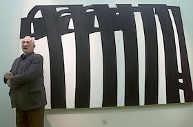 Французский художник-абстракционист Пьер Сулаж на открытии своей выставки "Черный свет" в…