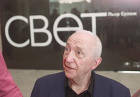 Французский абстракционист Пьер Сулаж (справа) с послом Франции в России Клодом Бланшмезоном (слева)…