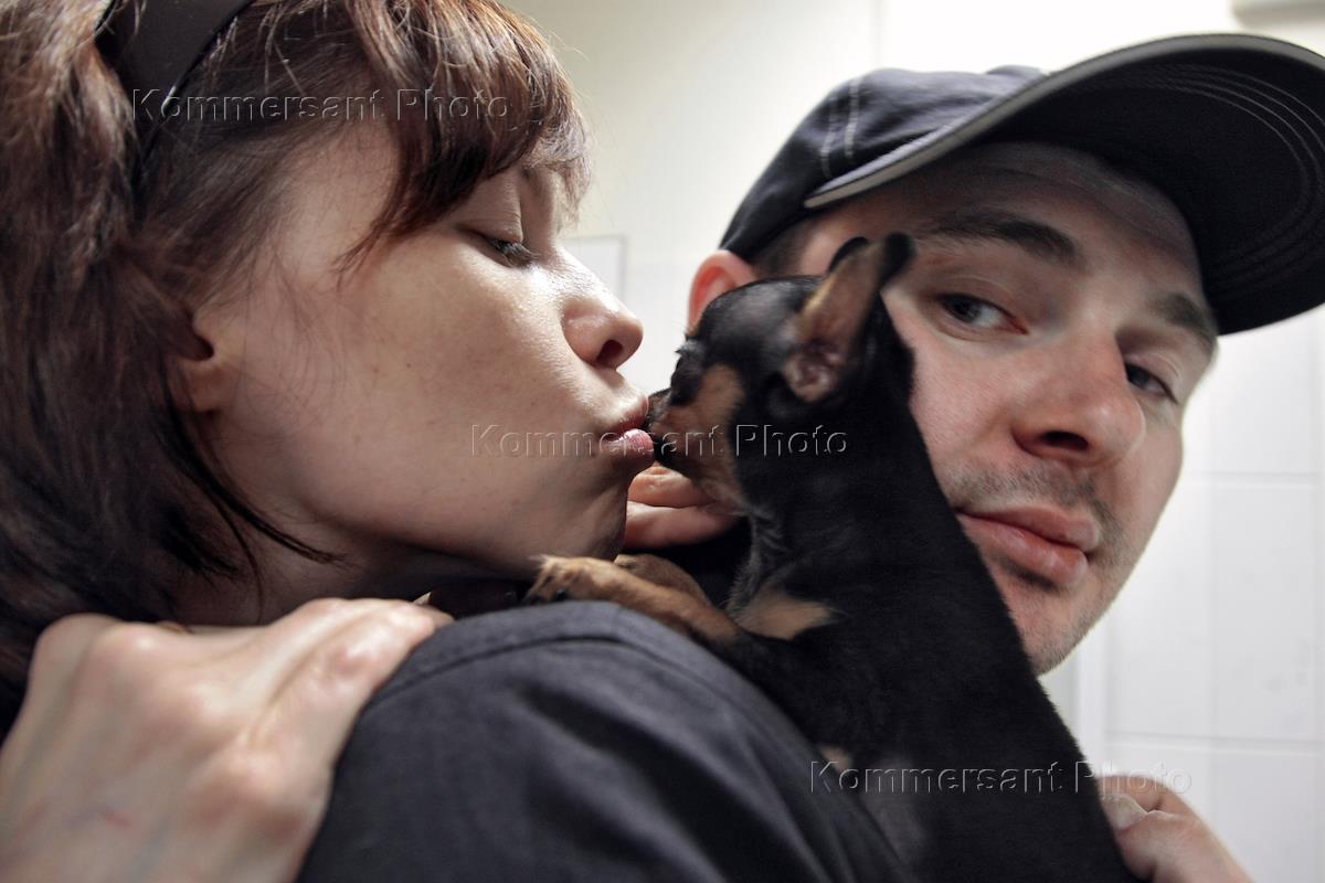 Хозяева с домашними животными в ветеринарной клинике "Белый клык".