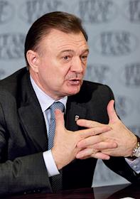 Политика Губернатора Рязанской области Олег Ковалев во время выступления на пресс-конференции : "Экономическая стратегия Рязанской области как субъекта Центрального федерального округа". Пресс-конференция прошла в ИТАР-ТАСС.