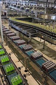 Завод компании "Хеппи Ленд" по производству слабоалкогольных и безалкогольных напитков. Конвейер.