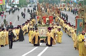 Алексий II на Крестном ходе и выносе мощей Алексия Мечева из Новоспасского монастыря.