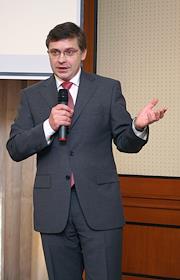 Глава представительства "Quelle" в России Сергей Косов на пресс-брифинге компании "Quelle".