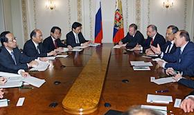 Премьер-министр Японии Ясуо Фукуда во время встречи с Президентом России Владимиром Путиным.