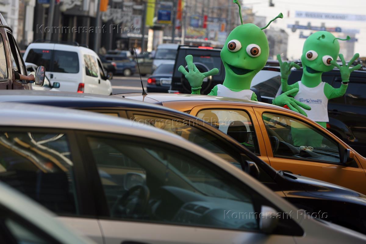 Ростовые рекламные куклы компании "Центр Планета" на улице Новослободской.
