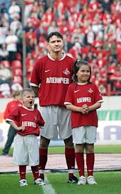 Футболист Дмитрий Аленичев со своими детьми перед началом своего прощального матча. Матч прошел на…