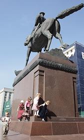 Дети у подножия памятника маршалу Георгию Жукову на Манежной площади.