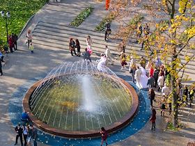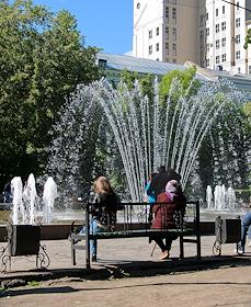 Улицы и виды города Воронежа. Петровский сквер на проспекте Революции. Фонтан в сквере - одно из…