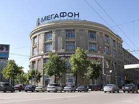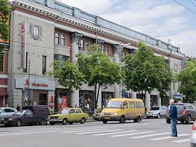 Улицы и виды города Воронежа. Проспект Революции. Здание ЦУМа и офис "Альфа-Банка".