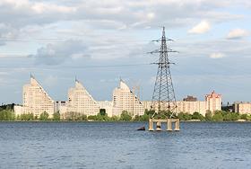 Улицы и виды города Воронежа. Воронежское водохранилище. Вид на жилой комплекс "Белые паруса".