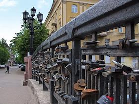 Виды Воронежа. Каменный мост. Ограждение моста, завешенно навесными замками с именами молодоженов.…