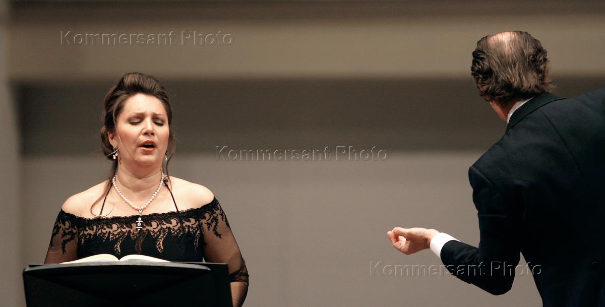 Итальянский дирижер Мауриццо Бенини (справа) во время концерта итальянской певицы Барбары Фриттоли…