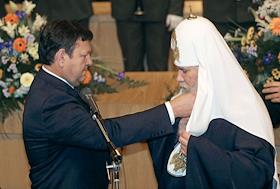 Патриарх Московский и Всея Руси Алексий II на торжественной церемонии награждения его знаком…