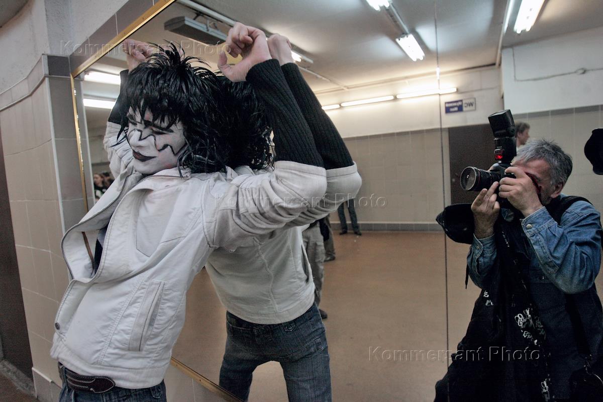 Американская группа "KISS" перед началом выступления на своем сольном концерте в спортивном…