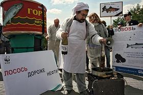Общество Акция "Прощание с лососем" с театрализованным шествием и "похоронами лосося", где будут собираться подписи граждан за введение моратория на добычу нефти на Камчатке на Пушкинской площади.