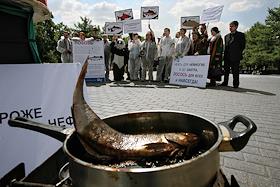 Акция "Прощание с лососем" с театрализованным шествием, "похоронами лосося" и сбором подписей…