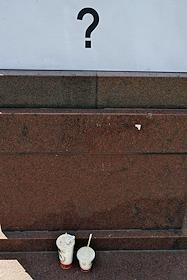 Жанровая фотография. Использованные пластиковые стаканчики из "МакДональдса" и вопросительный знак…