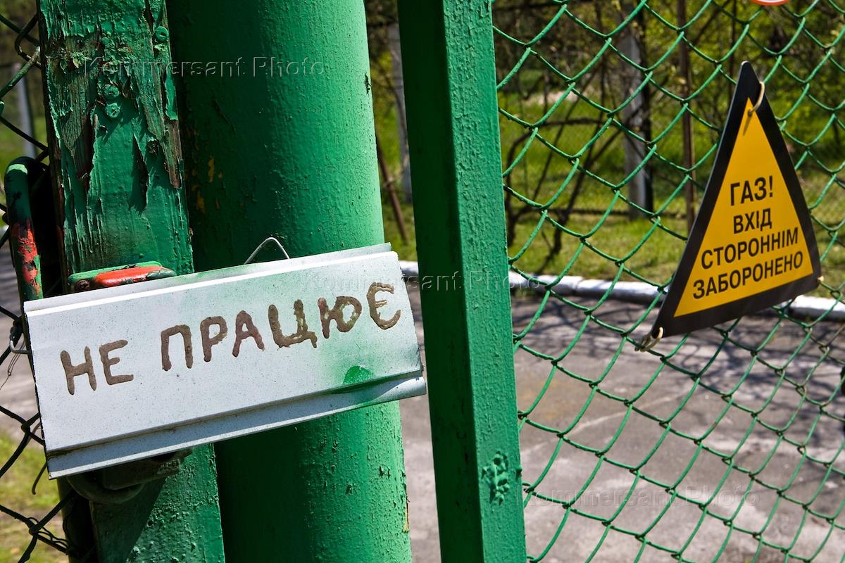 Газораспределительная станция (ГРС). Табличка "Не работает" и предупредительная табличка "Газ!…