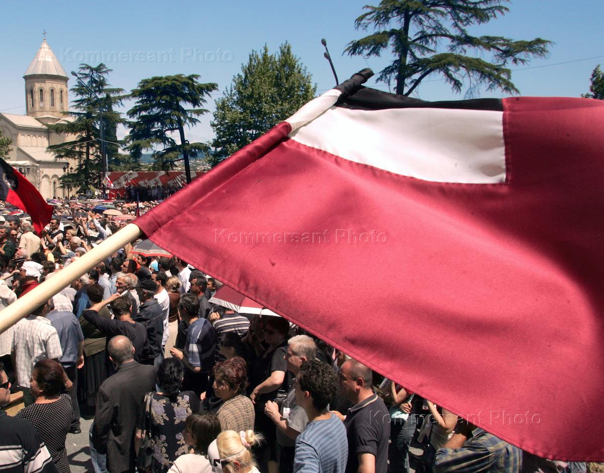 Участники митинга оппозиции около здания Парламента Грузии в День независимости Грузии.