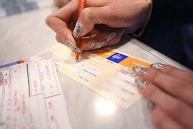 Кассир выписывает проездные документы для пассажиров регулярного рейса "Красноярск-Москва" в…