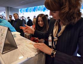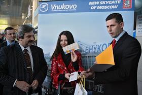 Вручения проездного билета пассажиру регулярного рейса "Красноярск-Москва" в аэропорту "Внуково".